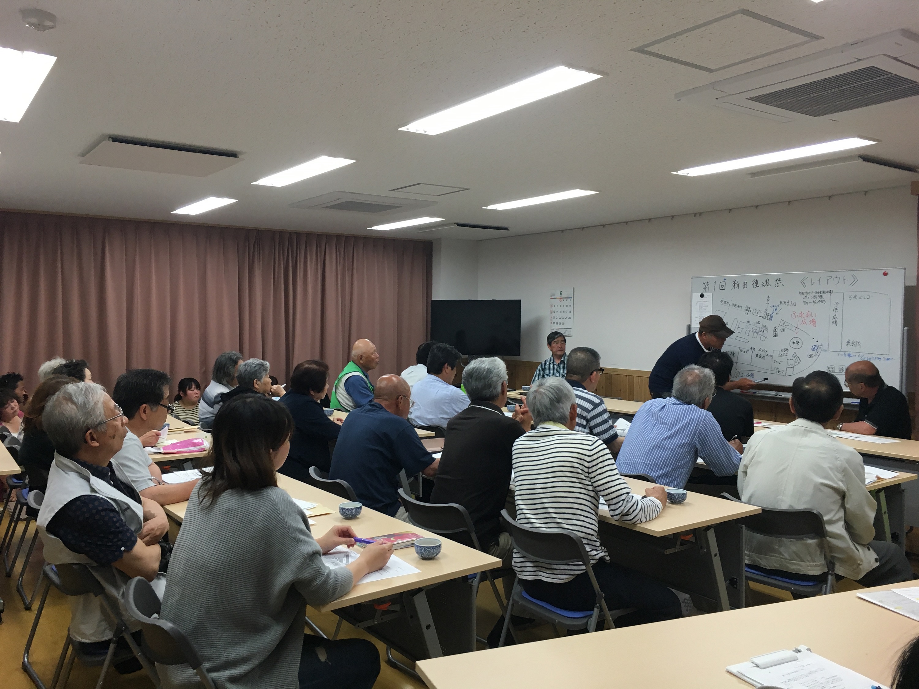 定例会議には、公営住宅の有志の方、地元町内会の有志の方、合わせて30人以上の老若男女が集い、当日の会場の配置やステージイベントの段取りなどが活発に話し合われており、とても盛り上がるイベントになりそうだと感じました。また会議の後には、私たちの仕事や当日の動きなどの確認をしました。どれも重要な仕事ばかりで正直なところ不安を少し感じましたが、それ以上に多賀城市の活動で普段お世話になっている方々と交流ができる貴重な機会を楽しみたいと思いました。